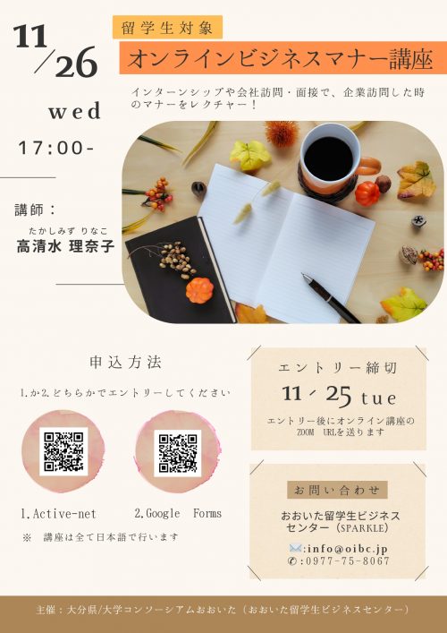 【参加留学生募集】留学生対象 ビジネスマナー講座 Business Manner Seminar for international students